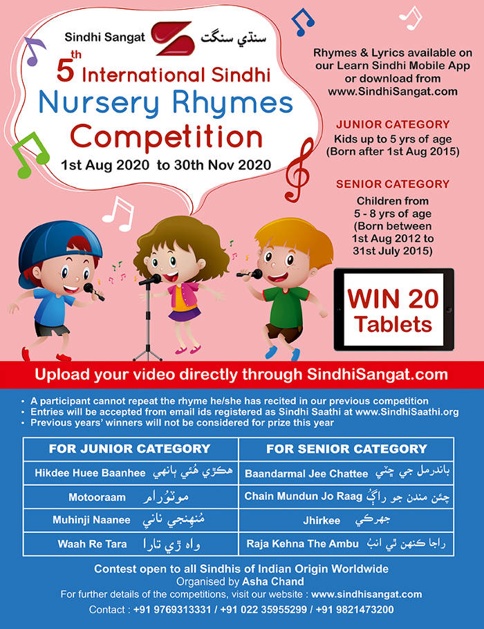 We are happy to announce our 6th international Sindhi nursery rhymes competition from 1st July to 1st October 22.